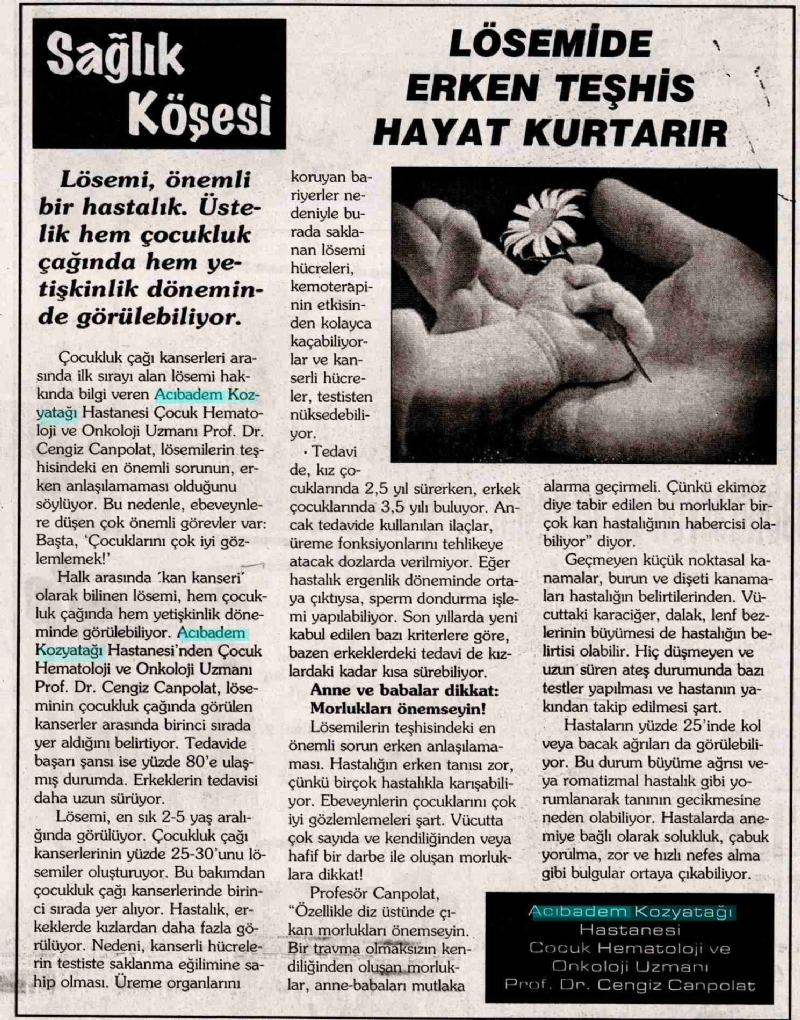 Onkoloji, Kan Hastalıkları (Genel), Lösemi, Hematoloji, Cengiz Canpolat, Acıbadem Kozyatağı Hastanesi, Kemoterapi