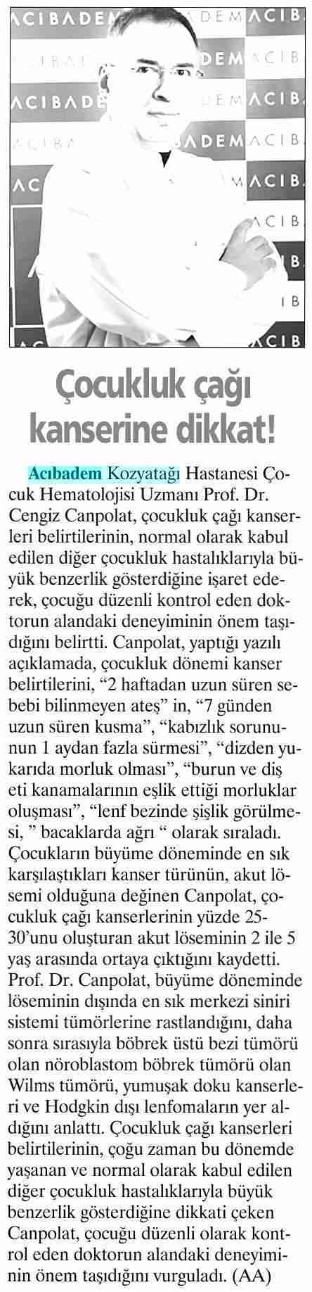 Tümör, Beden Sağlığı (Genel), Kanser (Genel), Lösemi, Hematoloji, Cengiz Canpolat, Acıbadem Kozyatağı Hastanesi