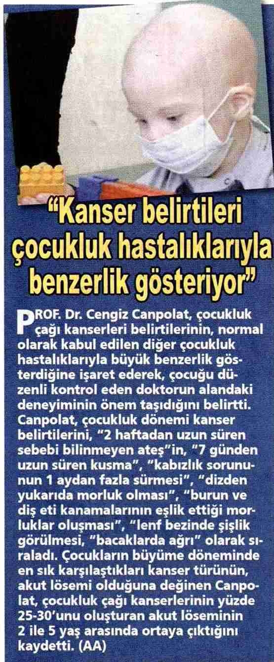 KANSER BELİRTİLERİ ÇOCUKLUK HASTALIKLARIYLA BENZERLİK GÖSTERİYOR - Haber Ekspres (İzmir)